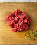 Färsen är hängmörad innan malning vilket ger både bättre konsistens och en djupare smak än vanlig butiksköttfärs.