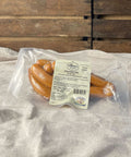 Grisskött (79%), vatten, potatismjöl, grisspäck, kryddor, varmrökt med alspån.