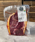 En klassisk biff med fin balans mellan mörhet och smak – ryggbiffen från Hagshultskossorna kommer från pensionerade mjölkkor som fått leva vidare på gräsbete i lugn och ro. Köttet har en naturlig marmorering, ett gulare fett och en djupare färg som vittnar om både ålder och gräsbaserad kost.