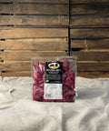 Köttet hängmöras i minst två veckor för att fördjupa smaken och minska vattenhalten. Därefter vakuumpackas och fryses det in direkt efter styckning för att bevara kvaliteten. Leveransen sker fryst med frysbil för att hålla en obruten fryskedja hela vägen hem till dig.