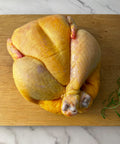 Kycklingen kommer från familjeföretaget Bjärefågel i Torekov – Sveriges enda producent av klimatcertifierad kyckling. Här arbetar man aktivt med etisk djurhållning och hållbarhet. Ranger Gold-kycklingarna får växa långsamt i lugn miljö med gott om plats och varsam hantering. Fodret är vegetabiliskt och baserat på svenskodlad majs, helt utan antibiotika och GMO.
