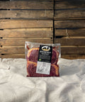 Köttet hängmöras i minst två veckor för att fördjupa smaken och minska vattenhalten. Därefter vakuumpackas och fryses det in direkt efter styckning för att bevara kvaliteten. Leveransen sker fryst med frysbil för att hålla en obruten fryskedja hela vägen hem till dig.