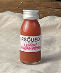 RSCUED Shot Citron/Sichuan är en juiceshot gjord på äpple, citron, ingefära, sichuanpeppar och chili med pepprig smak. RSCUED juiceshots är framställda av räddad frukt som annars skulle gå till spillo och som istället blir goda och hållbart producerade juicer.
