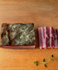 Pancettan är helt fri från nitrit, konserveringsmedel och E-ämnen – bara kött, kryddor och tid. Precis som riktigt mathantverk ska vara.